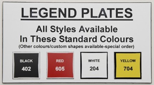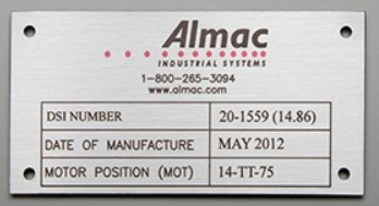 lamecoid plastic, brass or stainless steel for product ID plates. Full colour can be